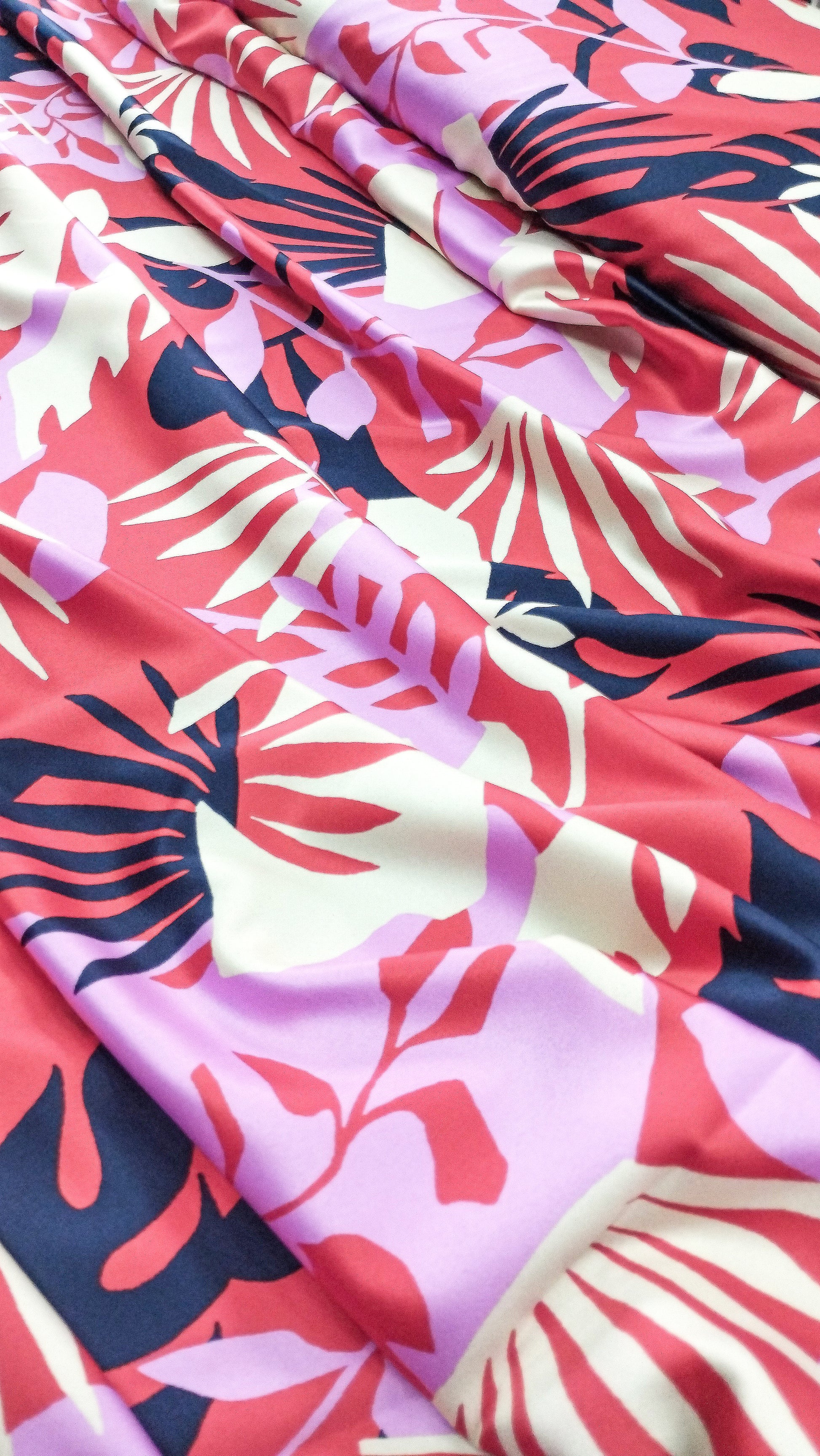La seda estampada es un textil suave al tacto, liviano, fresco y con excelente caída. Ideal para prendas en clima cálido como vestidos, faldas y blusas.